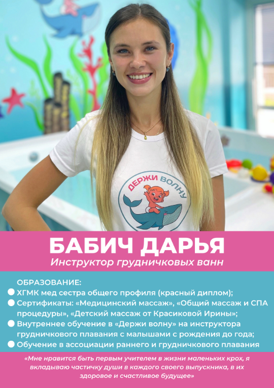 Каждый сотрудник нашей команды меняет мир в лучшую сторону, так как мы помогаем развитию детей. К нам приходят не только укрепить иммунитет, убрать страх воды, научиться плавать и всесторонне развиваться. Но и по таким показаниям как: гипо-гипер тонус, кривошея, с недоношенными малышами и тд. Также мы проводим гидрореабилитацию: с задержкой речи и развития, аутизмом, ДЦП.